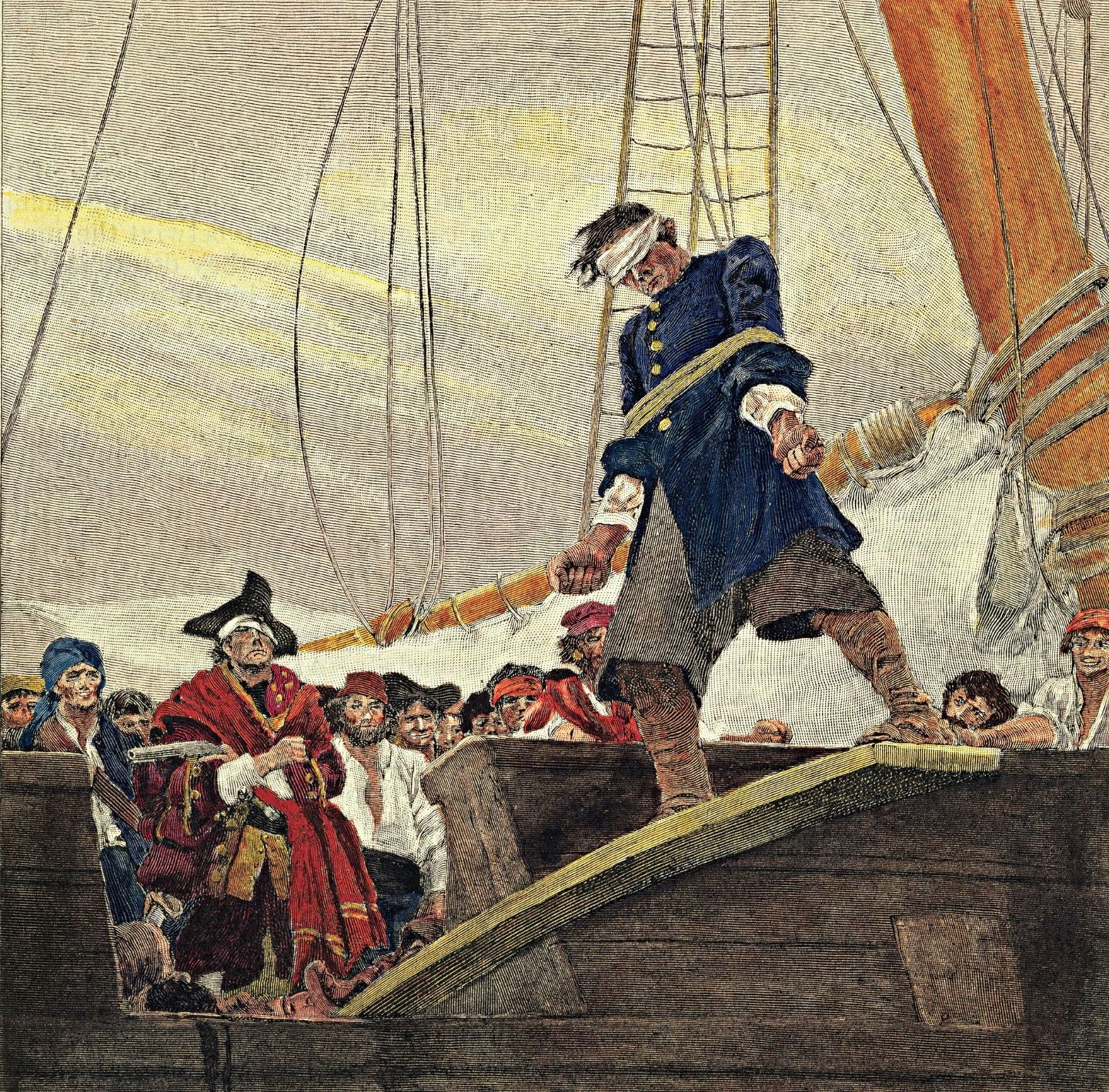 Daniel Defoe first brought the practice into the public imagination in his 1724 book A General History of the Pyrates, where Defoe described ancient swashbucklers in the Mediterranean telling their Roman captives they were free to go if they followed the ship’s ladder into the waves to fend for themselves.